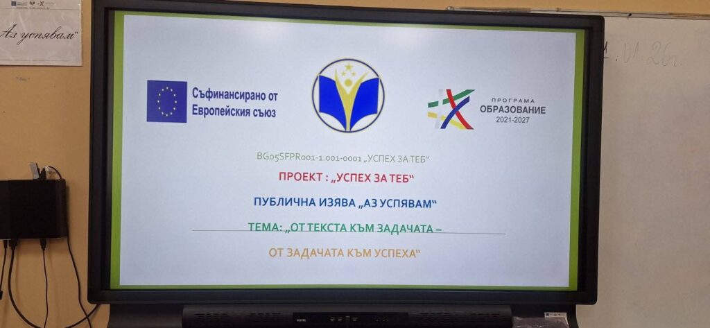 На 21.01.2026 г. в ОУ „Гео Милев“, с. Чернооково, се проведе публична изява по Български език и литература и математика, реализирана по проект „Успех за теб“.